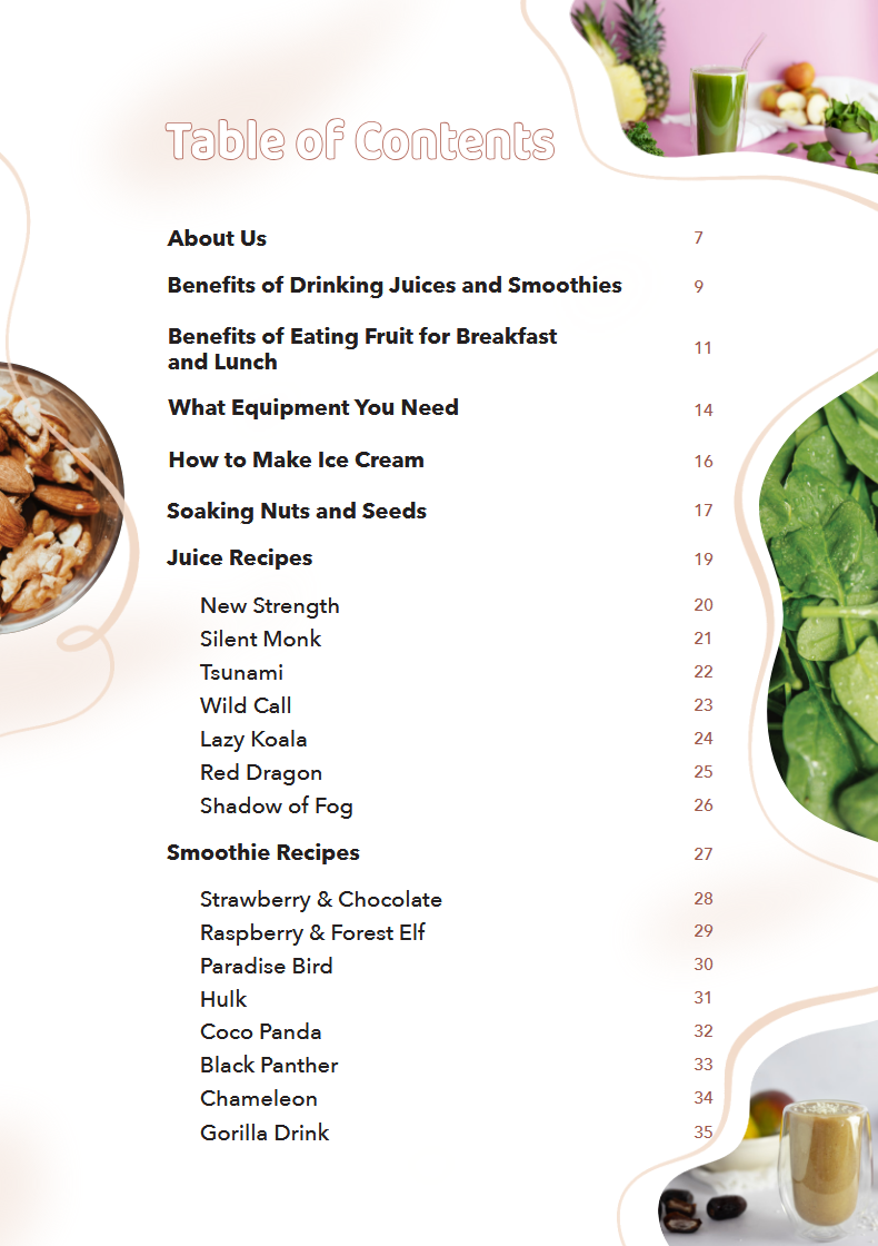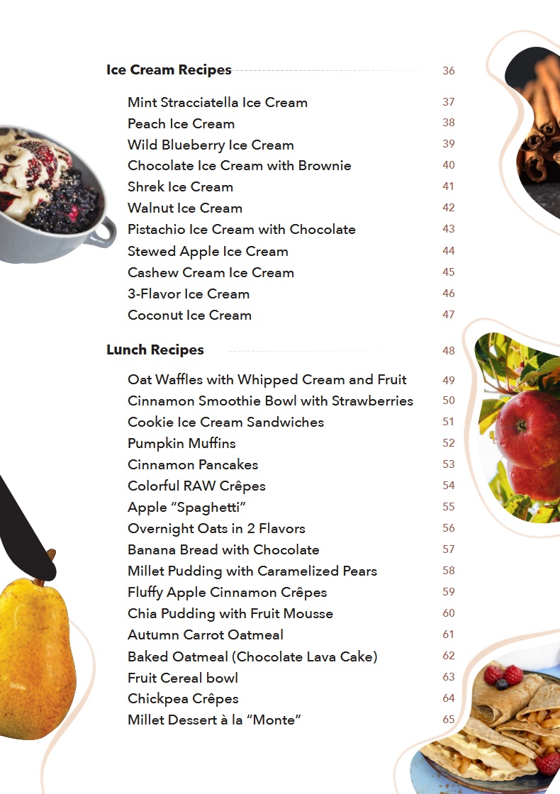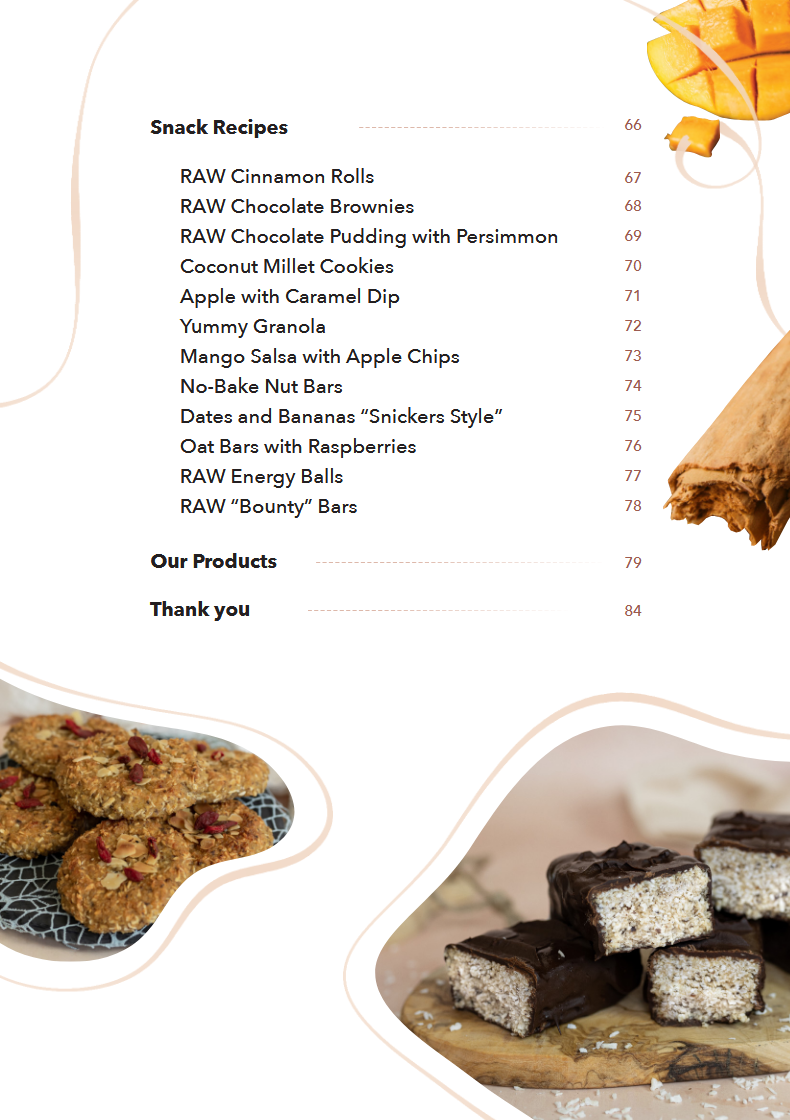 Amazing recipes — highly recommended! The ice cream is incredible, the juices and snacks are out of this world. There’s so much in here, beautifully described and illustrated. I’m honestly surprised by how much you can enjoy without using wheat flour. I’m already looking forward to your next ebook with lunch and dinner dishes 🙂